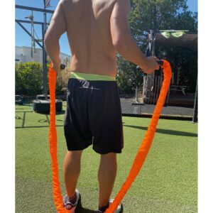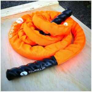 - - Fabriquée en fibre de nylon. - Extrêmes engommés pour une meilleur prise. - Excellent exercice cardio qui fortifie la partie supérieur du corps. - Diamétre de la corde: 38 mm.
