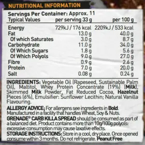 - Taux de 20% de protéines par portion Faible teneur en sucres et graisses saturées Goûts incroyablement délicieux Idéal pour se faire plaisir en collation Carb Killa Protein Spread est une pâte à tartiner protéinée fabriquée par la marque Grenade. Cette pâte à tartiner est idéale à consommer lors de vos pauses gourmandes et son goût vous fera rappeler les barres…
