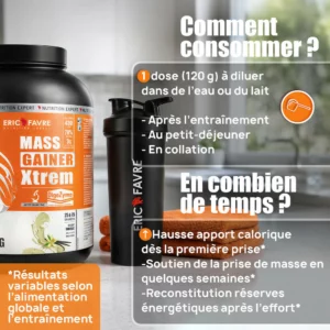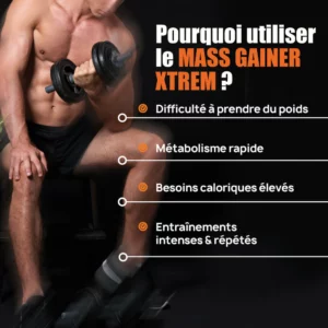 - Mass Gainer Xtrem : Pour une prise de masse rapide, efficace et controlée 433kcal par portion 91% de glucides 3g de créatine monohydrate Prise de masse Croissance musculaire Le Mass Gainer XTREM a été pensé pour répondre à un objectif précis : augmenter efficacement l’apport calorique afin de soutenir la prise de masse, que ce soit dans le cadre d’un…