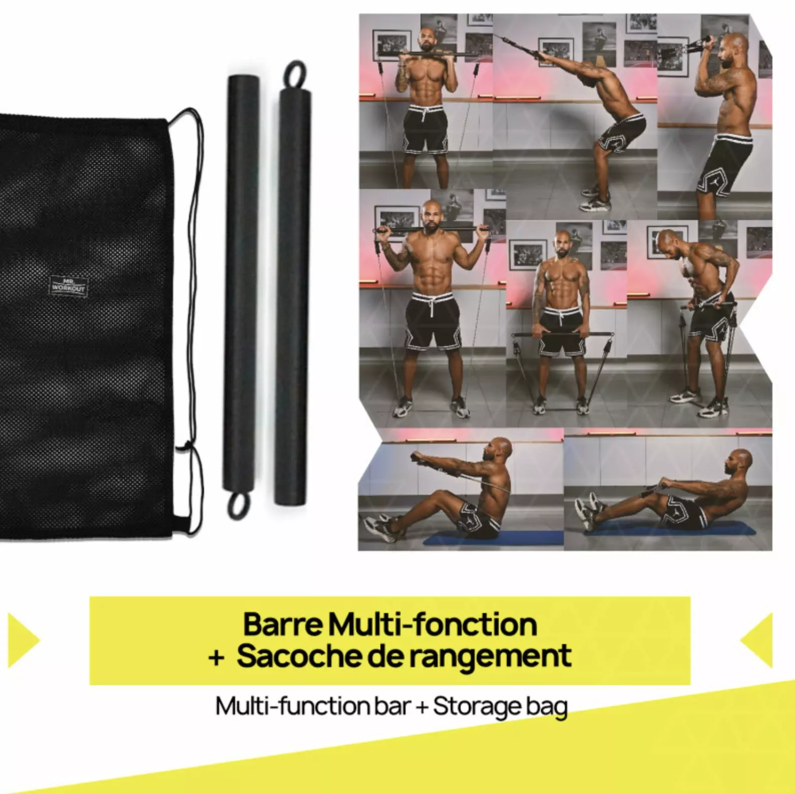 Repoussez vos limites avec le Fitness Pack Pro MisterWorkout ! Une solution ultra-polyvalente qui combine résistance, confort et performance. Conçu pour ceux qui veulent s’entraîner sérieusement à la maison, en salle ou en extérieur, ce kit vous offre une expérience d’entraînement professionnelle où que vous soyez. Grâce à sa composition premium et à l’ajout d’une barre multi-fonction, vous avez désormais accès à des mouvements encore plus variés, avec une sensation proche de celle des haltères ou des machines guidées.