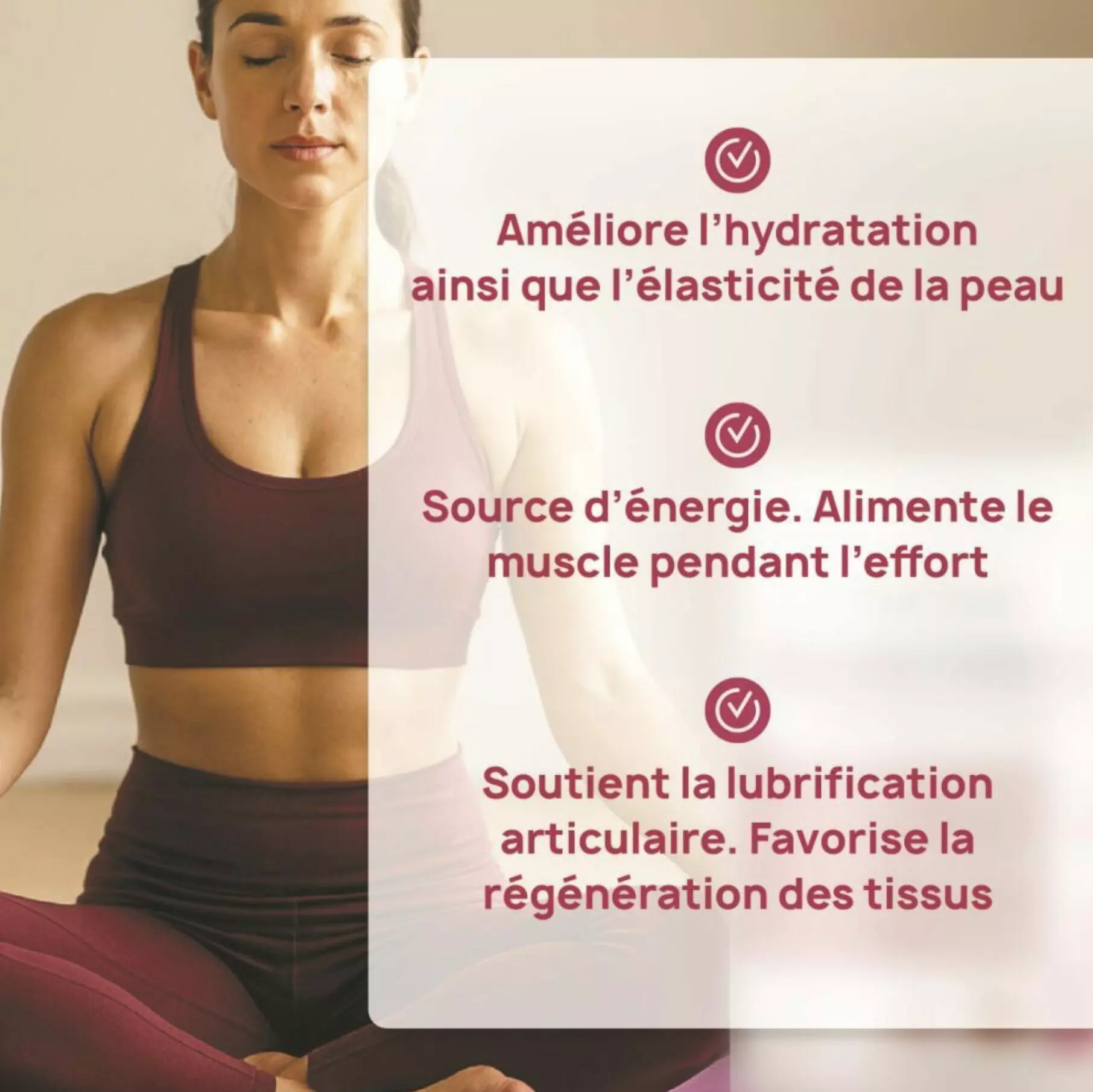 Le collagène est considéré comme la protéine la plus abondante du corps humain, puisqu’il représente près de 30% de la teneur protéique totale. On le retrouve majoritairement dans la peau, les os et articulations, mais également autour des fibres musculaires. De ce fait, il apporte flexibilité et protections des tissus, et contribue également à la croissance musculaire ainsi qu’à la cicatrisation. Autrement dit, c’est grâce à cette protéine que votre peau est belle et rafermie, et que vous contribuez à un certain confort musculaire et articulaire.