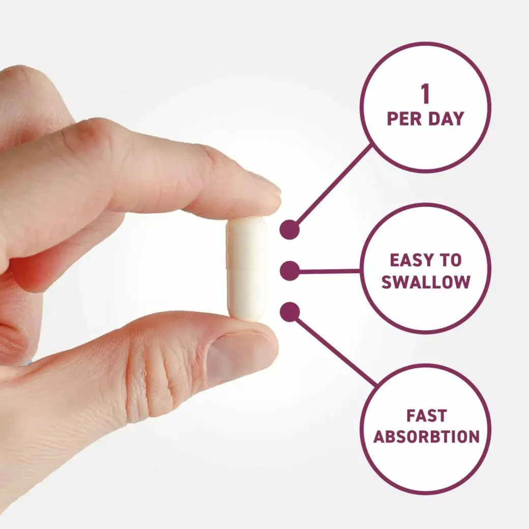 - Praticité d’utilisation : Une seule prise quotidienne de 2 gélules pour couvrir les besoins journaliers