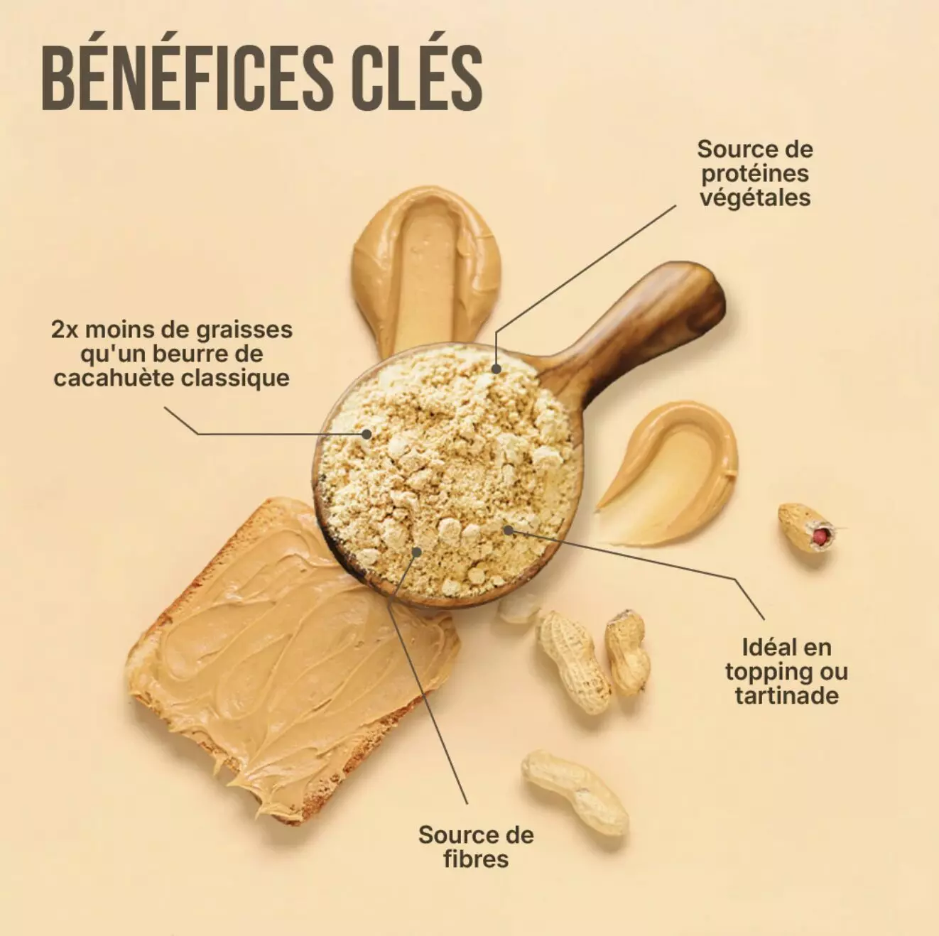 Vous avez envie de vous faire plaisir sans manger trop gras ? Notre beurre de cacahuète en poudre 100% dégraissées est fait pour vous.